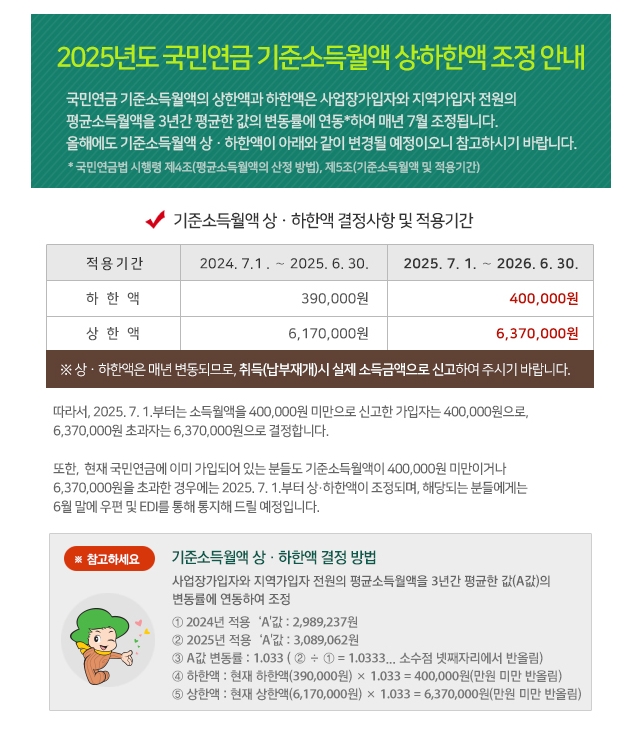 - A값 (전체 가입자 평균소득): 2,987,573원 (2024년 대비 3.1% 인상)