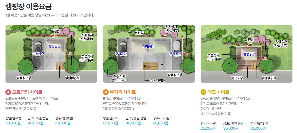 - 주차장 - 사이트당 1대 무료 주차 가능