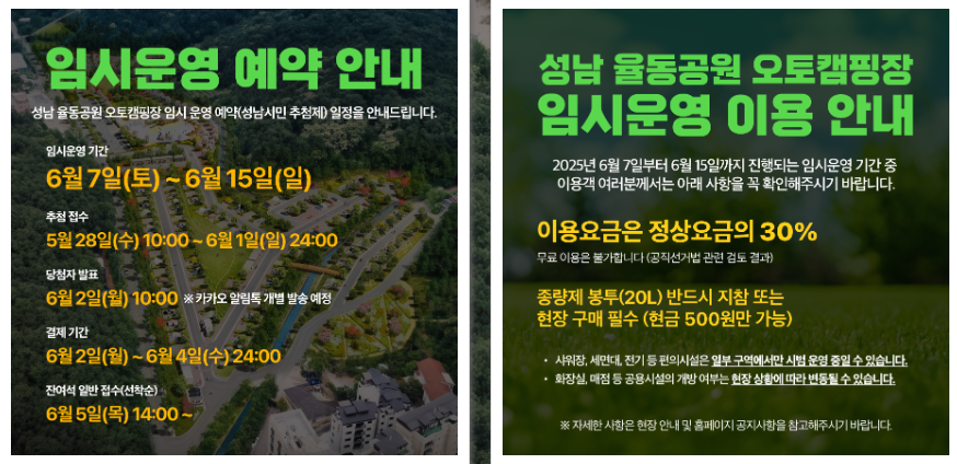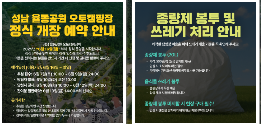 신상진 성남시장은 "성남시민들이 바쁜 일상에서 벗어나 가까운 율동공원에서 캠핑을 즐길 수 있도록 오토 캠핑장을 마련했다"고 했는데요, 정말 시민들을 위한 좋은 시설이 생긴 것 같아요! 👏