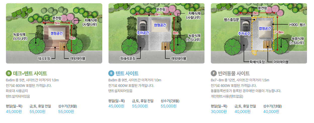 - 텐트 제공형 사이트 선택 - 장비 부담 제로!
