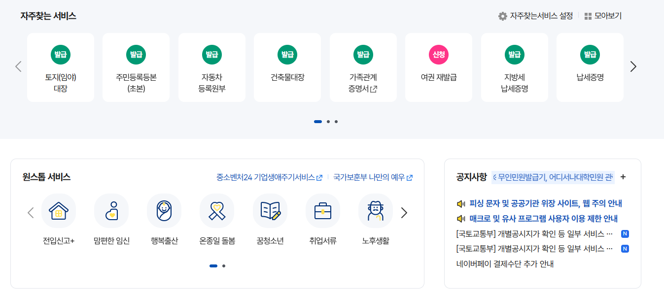 또는 메인화면 '자주 찾는 민원서비스'에서 바로 클릭!