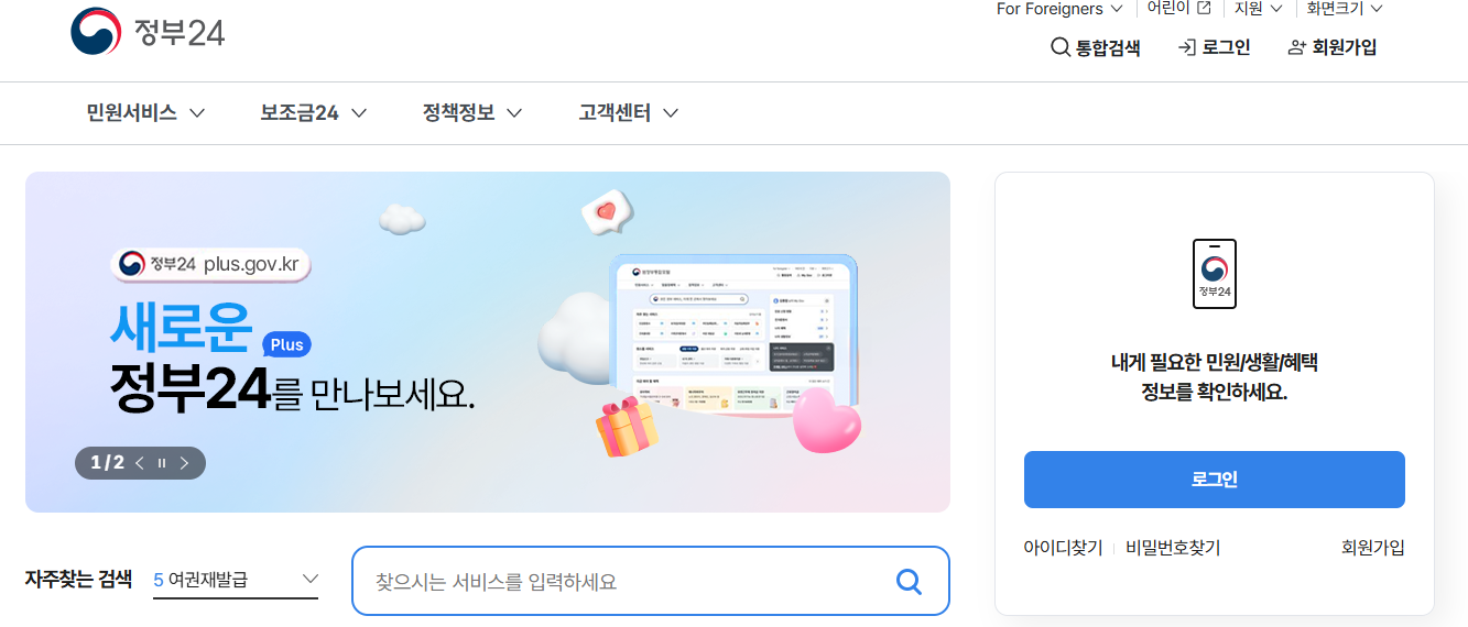 공동인증서가 없어도 괜찮아요! 카카오톡, 네이버, 삼성패스 등 간편인증만 있으면 바로 가능해요. 정부24 가입도 1분이면 끝나고요!