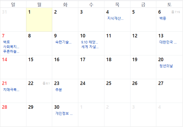 공휴일 말고도 9월에는 의미 있는 기념일들이 정말 많아요! 이런 날들을 알고 있으면 일상이 더 풍성해지거든요 😊